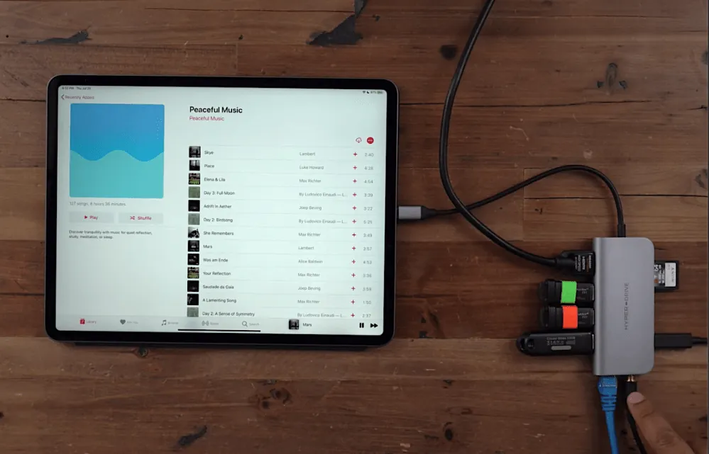 新しい9ポートHyperDrive USB-Cハブは、iPad ProとMacBook Pro/Air向けに特別に設計されており、延長USB-Cケーブルを備えています。また、3.5mmオーディオジャックも搭載しており、他のハブとは異なり、ヘッドフォンを接続するまでiPad Proの内蔵スピーカーがオフになりません。ご覧ください: